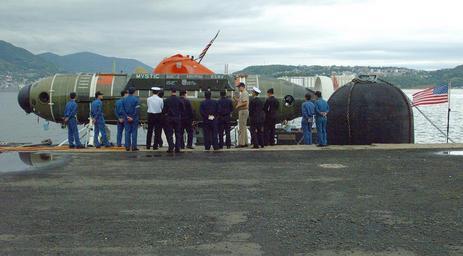| Keywords: US Navy 020423-N-0401E-001 DSRV-1 on board USS La Jolla.jpg en Sasebo Japan Apr 23 2002 A naval officer assigned to the U S Navy Los Angeles class attack submarine USS La Jolla SSN 701 explains the capabilities of the deep submergence rescue vehicle Mystic DSRV-1 to naval officers from the Japanese Maritime Self Defense Force La Jolla and Mystic will operate with surface ships and submarines from the U S Japan Australia the Republic of Korea and the Republic of Singapore during Exercise Pacific Reach Mystic was specifically designed to fill the need for an improved means of rescuing the crew of a submarine immobilized on the ocean floor It can operate independently of surface conditions or under ice for rapid response to an accident anywhere in the world U S Navy photo by Journalist 3rd Class Wes Eplen RELEASED 2002-04-23 020423-N-0401E-001 Navy http //www navy mil/view_image asp id 1360 U S Navy photo by Journalist 3rd Class Wes Eplen PD-USGov-Military-Navy Taken with Fujifilm FinePix S1 Pro DSRV-1 Mystic submarine 1970 Sasebo Nagasaki USS La Jolla SSN-701 Pacific Reach 2002 April 2002 photographs April 2002 in Japan 23 April Military people in 2002 Photographs of flags of the United States Military people with a flag of the United States Personality rights |
