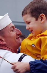 | Keywords: US Navy 020425-N-1110A-502 Sailor is greeted by son during homecoming.jpg en Norfolk Naval Station VA Apr 25 2002 -- Damage Controlman 1st Class Jeff Paca is greeted by his son during homecoming celebrations for the U S Navy destroyer USS Cole DDG 67 The Cole has been at the Northrop Grumman Ship System facility in Pascagoula MS for the past 14 months undergoing repairs after a terrorist bomb blew a hole in her port side while refueling in the port city of Aden Yemen killing 17 sailors U S Navy photo by Photographer s Mate 1st Class Tina M Ackerman RELEASED 2002-04-25 020425-N-1110A-502 Navy http //www navy mil/view_image asp id 1368 U S Navy photo by Photographer s Mate 1st Class Tina M Ackerman PD-USGov-Military-Navy Personality rights Sailor suits Sailor collars Military people of the United States with children Naval Station Norfolk Sailors coming home Fathers and sons Boys of the United States April 2002 photographs April 2002 in the United States Military people in 2002 Sailor caps of the United States Navy 25 April April 2002 in Virginia Taken with Nikon D1H Sailors from the United States Navy Two males |