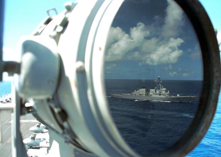 Keywords: US Navy 020425-N-1407C-001 USS Mahan - signal light reflection.jpg en At sea aboard USS George Washington CVN 73 Apr 25 2002 -- The guided missile destroyer USS Mahan DDG 72 comes alongside during operations with the carrier battle group Mahan is seen reflected in a signal light on the signal bridge aboard George Washington Both ships are conducting integrated training exercises in the Caribbean Sea U S Navy photo by Photographer's Mate 3rd Class J Scott Campbell RELEASED 2002-04-25 020425-N-1407C-001 Navy http //www navy mil/view_image asp id 1391 U S Navy photo by Photographer's Mate 3rd Class J Scott Campbell PD-USGov-Military-Navy Aboard USS George Washington CVN-73 Naval signalling lamps Reflections in the United States April 2002 photographs April 2002 in the United States