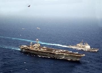 | Keywords: US Navy 020527-N-6492H-002 USS Kennedy - Missing Man Formation.jpg en At sea with USS John F Kennedy CV 67 May 27 2002 -- Aircraft assigned to Carrier Air Wing Seven CVW-7 fly between USS John F Kennedy and USS Hue City CG 66 on Memorial Day An F-14B Tomcat breaks up and out to form a Missing Man Formation in honor of those who gave their lives to preserve freedom for our country Kennedy is deployed conducting combat missions in support of Operation Enduring Freedom U S Navy photo by Photographer s Mate 1st Class Jim Hampshire RELEASED 2002-05-27 020527-N-6492H-002 Navy http //www navy mil/view_image asp id 1649 U S Navy photo by Photographer s Mate 1st Class Jim Hampshire PD-USGov-Military-Navy General views of USS John F Kennedy CV-67 USS Hué City CG-66 May 2002 photographs |