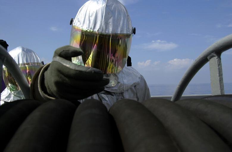 Keywords: US Navy 020909-N-0111R-007 A Sailor assigned to the flight deck fire party checks an Aqueous Film Forming Foam (AFFF) hose reel for heat during a simulated fire.jpg en At sea aboard USS La Salle AGF 3 Sep 9 2002 -- A Sailor assigned to the flight deck fire party checks an Aqueous Film Forming Foam AFFF hose reel for heat during a simulated fire aboard the Sixth Fleet flagship during a training evolution Firefighting foam agents suppress fire by separating the fuel from the air oxygen Flight deck firefighters wear silver suits for protection against the enormous heat generated by fuel fires Sailors regularly train for every type of casualty aboard ship in order to become proficient at quickly containing damage La Salle is on a regularly scheduled deployment to the Mediterranean Sea U S Navy photo by Photographer s Mate 2nd Class Todd Reeves RELEASED 2002-09-09 020909-N-0111R-007 Navy http //www navy mil/view_image asp id 2839 U S Navy photo by Photographer s Mate 2nd Class Todd Reeves PD-USGov-Military-Navy Aboard USS La Salle AGF-3 Aqueous Film Forming Foam Fire proximity suits |