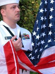 | Keywords: US Navy 020911-N-0000P-001 Raising the flag during morning colors.jpg en Gaeta Italy Sep 11 2002 -- Master at Arms 1st Class Howard Linville from Milton Fla carefully holds the American flag just seconds before hoisting it to half-mast during morning quarters at Naval Support Activity Gaeta This flag has special significance as it was raised over the Pentagon in Washington D C on August 14 2002 in a symbolic gesture to honor those who lost their lives on September 11 2001 In keeping with Navy tradition and in accordance with fleet-wide directives the American flag is to be flown at half-mast on this day of national mourning and each anniversary marking the first National Patriots Day U S Navy photo by Journalist 3rd Class Jason J Perry RELEASED 2002-09-11 020911-N-0000P-001 Navy http //www navy mil/view_image asp id 2631 U S Navy photo by Journalist 3rd Class Jason J Perry PD-USGov-Military-Navy Military people with flags Flag hoisting Master-at-arms Naval Support Activity Naples Detachment Gaeta First anniversary of the September 11 2001 attacks |