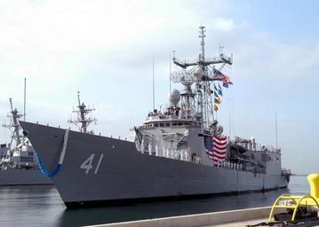 | Keywords: US Navy 021002-N-6132R-002 USS McClusky (FFG 41) pulls into her berth at Naval Station San Diego.jpg en San Diego Ca October 2 2002 -- With her crew manning the rails the guided missile frigate USS McClusky FFG 41 pulls into her berth at Naval Station San Diego after completing a regularly scheduled deployment McClusky's deployment took her to South America and included the rescue of a mariner who was adrift at sea for nearly four months U S Navy photo by Photographer s Mate 3rd Class Luis Rojas RELEASED 2002-10-02 021002-N-6132R-002 Navy http //www navy mil/view_image asp id 2883 U S Navy photo by Photographer s Mate 3rd Class Luis Rojas PD-USGov-Military-Navy Naval ship arrivals to Naval Base San Diego Manning the rail in the United States Navy USS McClusky FFG-41 October 2002 photographs |