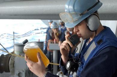 | Keywords: US Navy 021016-N-0283O-005 Machinist^rsquo,s Mate examines a sample of Diesel Fuel Marine (DFM).jpg en At sea aboard USS Kitty Hawk CV 63 Oct 16 2002 -- Machinist s Mate Fireman Michael Barton from Ashdown Ark examines a sample of Diesel Fuel Marine DFM and reports his findings to the carrier s Oil Lab during a replenishment at sea RAS evolution Fuel samples are collected as the fuel comes aboard to ensure it is free of waste and foreign materials that could cause problems for the ship s fuel system Kitty Hawk's current mission is to provide a forward presence in the Asia/Pacific region conduct training and exercises with regional allies and as America s 9-1-1 Battle Group remain available to respond to emergent national taskings when and where needed Kitty Hawk is the world s only permanently forward-deployed aircraft carrier and operates out of Yokosuka Japan U S Navy Photo by Photographer s Mate Airman Recruit Sean M O Leary RELEASED 2002-10-16 021016-N-0283O-005 Navy http //www navy mil/view_image asp id 2971 U S Navy Photo by Photographer s Mate Airman Recruit Sean M O Leary PD-USGov-Military-Navy Aboard USS Kitty Hawk CV-63 Sample fueling-at-sea October 2002 photographs |