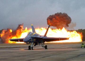 | Keywords: US Navy 021026-N-0000G-020 Wall of Fire pyrotechnic demonstration.jpg en Naval Air Station Joint Reserve Base Belle Chasse La Oct 2 2002 -- Air Station personnel entertain the audience with the Wall of Fire pyrotechnic demonstration at the 2002 N awlins Air Show In the foreground sits one of the U S Navy s F/A-18 Hornet strike fighter aircraft belonging to the Blue Angels flight demonstration team The Blue Angels performed their aerial show later that afternoon U S Navy photo by Photographer s Mate Airman Mark Gleason RELEASED 2002-10-02 021026-N-0000G-020 Navy http //www navy mil/view_image asp id 3823 U S Navy photo by Photographer s Mate Airman Mark Gleason PD-USGov-Military-Navy N'awlins Air Show Blue Angels F/A-18 Hornet in 2002 Pyrotechnics Aircraft facing left Taken with Nikon D1X October 2002 photographs |