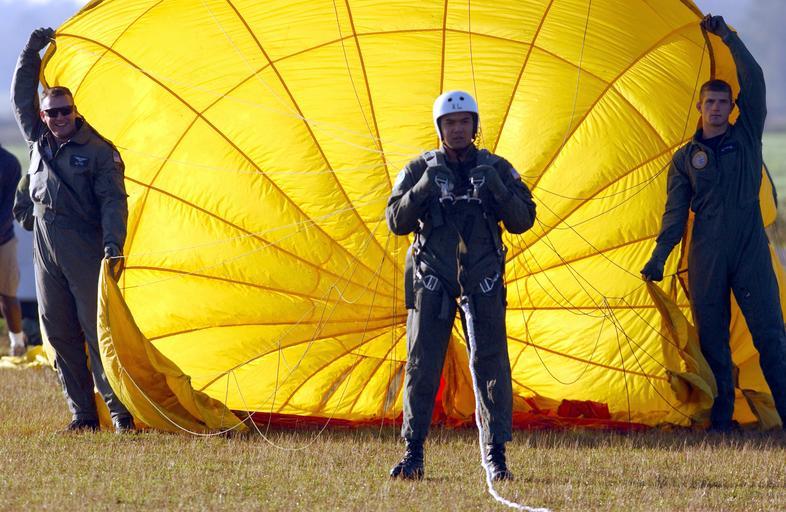 Keywords: US Navy 021106-N-5862D-005 Naval survival parachut training.jpg en Aboard Naval Air Station NAS Pensacola Nov 6 2002 -- Navy Air Force and Marine Corps officers attending the Navy Survival Training Institute get a taste of the dynamics of parachuting by training with a Para-sail Students are towed via a rope attached to a vehicle and are pulled to reach a height of approximately 100 feet The exercise allows the students to practice controlling the parachute during decent while performing proper Parachute Landing Fall PLF techniques designed to minimize possible injury during a parachute landing U S Navy photo by Chief Photographer s Mate Chris Desmond RELEASED 021106-N-5862D-005 Navy http //www navy mil/view_image asp id 3515 U S Navy photo by Chief Photographer s Mate Chris Desmond PD-USGov-Military-Navy Naval Air Station Pensacola Paratroopers |