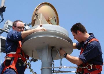 | Keywords: US Navy 021107-N-4374S-019 SITE TV antenna maintenance aboard USS Nassau.jpg en At sea aboard USS Nassau LHA 4 Nov 7 2002 -- Interior Communications Electrician 1st Class Eric Stombaugh left and Interior Communications Electrician 2nd Class Don Pierce right conduct maintenance on the shipboard information training and entertainment SITE system antenna SITE provides crewmembers with important training news and information while deployed at sea Nassau is home ported in Norfolk Va and is on a regularly scheduled six-month deployment in the Central Command area of responsibility conducting missions in support of Operation Enduring Freedom U S Navy Photograph by Photographer s Mate 2nd Class Michael Sandberg RELEASED 2002-11-07 021107-N-4374S-019 Navy http //www navy mil/view_image asp id 3273 U S Navy photo PD-USGov-Military-Navy Aboard USS Nassau LHA-4 Interior Communications Electrician |