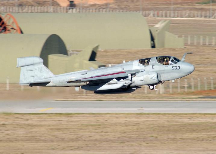 | Keywords: US Navy 021117-F-2751G-018 U.S. Navy EA-6B Prowler taking off from Incirlik Air Base, Turkey.jpg  en Incirlik Air Base Turkey Nov 17 2002 -- An EA-6B Prowler assigned to the Wizards of Tactical Electronic Warfare Squadron One Thirty Three VAQ-133 takes off from Incirlik Air Base The aircraft and her crew are assigned to a Combined Task Force conducting missions in support of Operation Northern Watch which has been enforcing the no-fly zone over Northern Iraq since 1997 Note that the aircraft wears the tail code NL assigned to the Commander VAQ-Wings Pacific at NAS Whidbey Island From 1956 to 1995 this was the tail code of Carrier Air Wing 15 CVW-15 2002-11-17 021117-F-2751G-018 Navy http //www navy mil/view_image asp id 3906 U S Air Force photo by SSgt Jason W Gamble PD-USGov-Military-Navy EA-6 Prowler take offs Incirlik Air Base Electronic Attack Squadron 133 United States Navy |