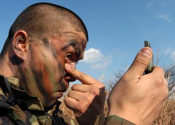 | Keywords: US Navy 021121-N-8726C-001 Base security training preparations.jpg en Aboard Misawa Air Force Base Japan Nov 21 2002 -- Senior Airman Emilio Loera assigned to the U S Air Force 35th Security Forces Squadron applies face paint prior to the start of quarterly joint services air base defense training Training is designed to prepare security units to protect forward deployed facilities and equipment against hostile forces including enemy fire and sniper fire U S Navy photo by Photographer s Mate 2nd Class John Collins RELEASED Aboard Misawa Air Force Base Japan Nov 21 2002 -- Senior Airman Emilio Loera assigned to the U S Air Force 35th Security Forces Squadron applies face paint prior to the start of quarterly joint services air base defense training Training is designed to prepare security units to protect forward deployed facilities and equipment against hostile forces including enemy fire and sniper fire U S Navy photo by Photographer s Mate 2nd Class John Collins RELEASED 2002-11-21 021121-N-8726C-001 Navy http //www navy mil/view_image asp id 3477 U S Navy photo by Photographer s Mate 2nd Class John Collins PD-USGov-Military-Navy Images from US Navy location MISAWA Japan Camouflage facepainting November 2002 photographs Military people in 2002 November 2002 in Japan 21 November Personality rights |