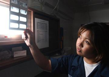 | Keywords: US Navy 021201-N-5362F-003 Dental Technician inspects a patient^rsquo,s dental x-rays for signs of tooth decay.jpg en At sea aboard USS Abraham Lincoln CVN 72 Dec 1 2002 -- Dental Technician Seaman Manila M Mercurio from Hercules Calif inspects a patient s bitewings for signs of tooth decay Bitewings are x-rays of the molars and pre-molars showing areas between the teeth that cannot normally be seen from regular visual observation Abraham Lincoln is deployed on a regularly scheduled deployment conducting combat missions in support of Operation Southern Watch U S Navy photo by Photographer's Mate Airman Bernardo Fuller RELEASED 2002-12-01 021201-N-5362F-003 Navy http //www navy mil/view_image asp id 3555 U S Navy photo by Photographer's Mate Airman Bernardo Fuller PD-USGov-Military-Navy Aboard USS Abraham Lincoln CVN-72 Dental X-rays |