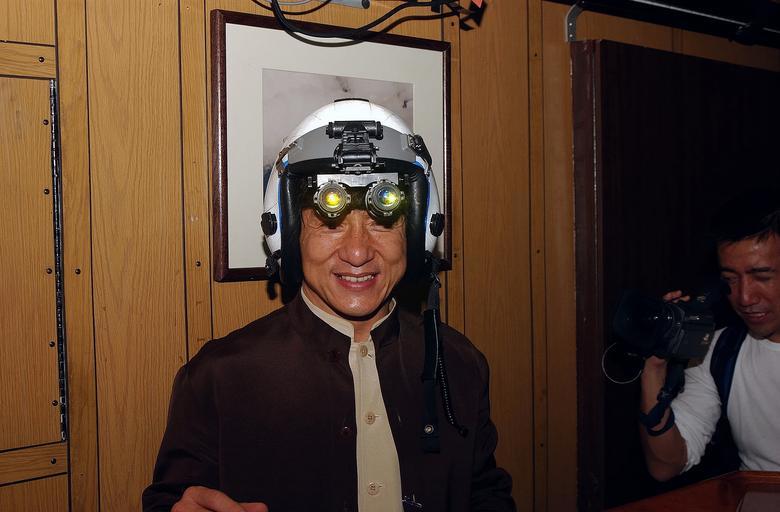 Keywords: US Navy 021202-N-0271M-016 Jackie Chan tries on a fighter pilot^rsquo,s helmet with night vision goggles attached during his visit aboard USS Kitty Hawk.jpg en Aboard USS Kitty Hawk CV 63 Dec 2 2002 -- International action-movie star and Hong Kong native Jackie Chan tries on a fighter pilot s helmet with night vision goggles attached during his visit aboard USS Kitty Hawk The Kitty Hawk's current mission is to provide a forward presence in the Asia/Pacific region conduct training and exercises with regional allies and as America s 9-1-1 Battle Group remain available to respond to emergent national taskings wherever and whenever needed U S Navy photo by Photographer s Mate 3rd Class Lee M McCaskill RELEASED Jackie Chan 2 grudnia 2002 roku podczas wizyty na lotniskowcu USS Kitty Hawk 2002-12-02 021202-N-0271M-016 Navy http //www navy mil/view_image asp id 3582 U S Navy photo by Photographer s Mate 3rd Class Lee M McCaskill PD-USGov-Military-Navy Aboard USS Kitty Hawk CV-63 Jackie Chan in 2002 Flying goggles |