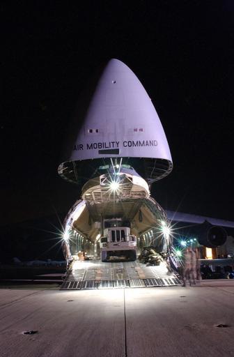 | Keywords: US Navy 021213-N-1485H-001 Seabees of Naval Mobile Construction Battalion Forty (NMCB 40) load equipment onto an Air Mobility Command (AMC) C-5 ^ldquo,Galaxy^rdquo, cargo plane.jpg en Ventura County Calif Dec 13 2002 -- Seabees of Naval Mobile Construction Battalion Forty NMCB 40 load equipment onto an Air Mobility Command AMC C-5 Galaxy cargo plane NMCB 40 is homported at Naval Base Ventura County and is headed for Guam in support of disaster relief efforts after Super Typhoon Pongsona passed over the island on Dec 8 2002 U S Navy photo by Photographer's Mate Airman Lamel J Hinton RELEASED 2002-12-13 021213-N-1485H-001 Navy http //www navy mil/view_image asp id 3756 U S Navy photo by Photographer's Mate Airman Lamel J Hinton PD-USGov-Military-Navy Naval Base Ventura County Transport of vehicles by C-5 Galaxy Transport of trucks by aircraft Naval Mobile Construction Battalion 40 International military trucks International Paystar Lockheed C-5 Galaxy nose loading doors Front views of trucks |