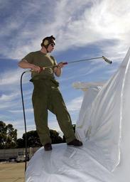 | Keywords: US Navy 030115-N-8590B-035 Sgt. Peter Dimartino from Marine Medium Helicopter Squadron Three Six Four (HMM-364) applies.jpg en Naval Air Station North Island Calif Jan 15 2003 Sgt Peter Dimartino from Marine Medium Helicopter Squadron Three Six Four HMM-364 applies shrink wrap to one of the squadrons CH-46E Sea Knights Squadron helicopters are being prepared for shipment via the Military Sealift Command MSC to an undisclosed destination The sealing process helps prevent corrosion during periods in saltwater environments U S Navy photo by Photographer s Mate Airman Andrew Betting RELEASED 2003-01-15 030115-N-8590B-035 Navy http //www navy mil/view_image asp id 4067 U S Navy photo by Photographer s Mate Airman Andrew Betting PD-USGov-Military-Navy Naval Air Station North Island in the 2000s Shrink wrap Marine Medium Helicopter Squadron 364 CH-46 US Marine Corps |