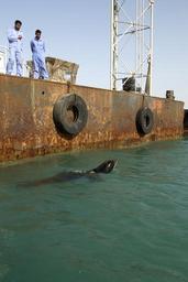 | Keywords: US Navy 030129-N-5319A-006 Space and Naval Warfare Systems Center^rsquo,s, Shallow Water Intruder Detection System (SWIDS) program.jpg en Central Command Area of Responsibility Jan 29 2003 -- Zak a 375-pound California sea lion swims near the pier as ship workers look on during one of many training swims taking place in the Central Command AOR Zak is participating in the Space and Naval Warfare Systems Center s Shallow Water Intruder Detection System SWIDS program Zak has been trained to locate swimmers near piers ships and other objects in the water considered suspicious and a possible threat to military forces in the area SWIDS program has been deployed as part of the continued effort to support missions under Operation Enduring Freedom U S Navy Photograph by Photographers Mate First Class Brien Aho RELEASED 2003-01-29 030129-N-5319A-006 Navy http //www navy mil/view_image asp id 4360 U S Navy photo PD-USGov-Military-Navy United States Navy images from Central Command United States Navy Marine Mammal Program |