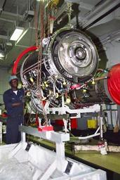| Keywords: US Navy 030209-N-5114J-003 GE-414 Jet Engine shipping.jpg en At sea aboard USS Abraham Lincoln CVN 72 Feb 9 2003 -- Aviation Machinist's Mate 2nd Class Raymond Appiahamponsah from Accra Ghana uses an overhead winch to position a High Pressure Compressor from a GE-414 Jet Engine to be put into it's shipping container so that it can be preserved for shipping back to the manufacturer Lincoln and her embarked Carrier Air Wing Fourteen CVW-14 are conducting flight operations in the Arabian Gulf U S Navy photo by Photographer's Mate Airman Daniel C Johnson RELEASED 2003-02-09 030209-N-5114J-003 Navy http //www navy mil/view_image asp id 4491 U S Navy photo by Photographer's Mate Airman Daniel C Johnson PD-USGov-Military-Navy Aboard USS Abraham Lincoln CVN-72 General Electric F414 |