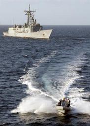 | Keywords: US Navy 030306-N-7672K-001 USS Gary at sea in the Gulf of Aden.jpg en Gulf of Aden Mar 7 2003 -- A Rigid Hull Inflatable Boat RHIB makes a return trip from the frigate USS Gary FFG 51 to the amphibious command and control ship USS Mount Whitney LCC/JCC-20 after transferring two new crewmembers who were reporting for duty aboard the frigate Mount Whitney and embarked U S Marines are deployed to the Horn of Africa region to conduct missions in support of Operation Enduring Freedom and the continuing war on terrorism U S Navy photo by Photographer s Mate 2nd Class Kurtis Korwan RELEASED 2003-03-07 030306-N-7672K-001 Navy http //www navy mil/view_image asp id 4992 U S Navy photo by Photographer s Mate 2nd Class Kurtis Korwan PD-USGov-Military-Navy USS Gary FFG-51 Rigid-hulled inflatable boats of US Navy Aboard USS Mount Whitney LCC-20 |