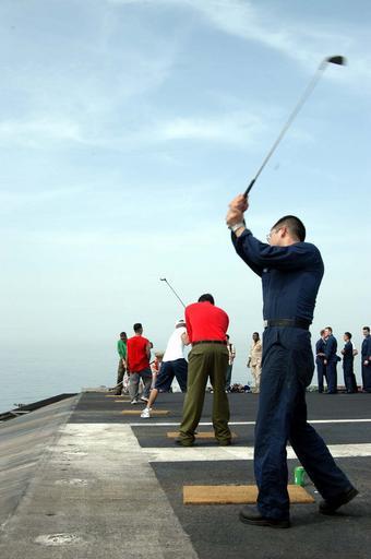 Keywords: US Navy 030311-N-9403F-002 Sailors enjoy an afternoon off from busy flight operations to enjoy a.jpg en Arabian Gulf Mar 10 2003 -- Sailors enjoy an afternoon off from busy flight operations to enjoy a Steel Beach picnic by hitting a few golf balls off the stern of the aircraft carrier USS Abraham Lincoln CVN 72 The picnic offered hamburgers and soft drinks along with the chance to participate in various recreational activities Lincoln and her embarked Carrier Air Wing Fourteen CVW-14 are conducting combat operations in support of Operation Southern Watch and Enduring Freedom U S Navy photo by Photographer's Mate Airman Jason Frost RELEASED 2003-03-10 030311-N-9403F-002 Navy http //www navy mil/view_image asp id 5217 U S Navy photo by Photographer's Mate Airman Jason Frost PD-USGov-Military-Navy Images from US Navy location ARABIAN SEA USS Abraham Lincoln CVN-72 flight deck Golf aboard ships |