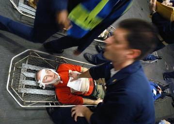 | Keywords: US Navy 030319-N-4048T-045 Medical personnel aboard the amphibious assault ship USS Kearsarge (LHD 3), along with embarked Fleet Surgical Team Eight personnel participate in a Mass Casualty training exercises.jpg en The Arabian Gulf Mar 19 2003 -- Medical personnel aboard the amphibious assault ship USS Kearsarge LHD 3 along with embarked Fleet Surgical Team Eight personnel participate in a Mass Casualty training exercises Kearsarge is conducting missions in support of Operation Enduring Freedom U S Navy photo by Photographer s Mate 2nd Class0 Alicia Tasz RELEASED 2003-03-19 030319-N-4048T-045 Navy http //www navy mil/view_image asp id 5740 U S Navy photo by Photographer s Mate 2nd Class0 Alicia Tasz PD-USGov-Military-Navy Aboard USS Kearsarge LHD-3 |