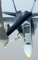| Keywords: US Navy 030321-F-7203T-004 A U.S. Navy F-A-18 Hornet takes fuel from an Air Force KC-135 Stratotanker in the skies near Iraq.jpg en Central Command Area of Responsibility Mar 21 2003 -- A U S Navy F/A-18 Hornet takes fuel from an Air Force KC-135 Stratotanker in the skies near Iraq before continuing on its mission in Support of Operation Iraqi Freedom The Hornet is primarily used as a fighter escort and fleet air defense However it can also be used as an attack aircraft with the capability of force projection interdiction as well as both close and deep air support This duel capability gives commanders immense flexibility in wartime operations Operation Iraqi Freedom is the multi-national coalition effort to liberate the Iraqi people eliminate Iraq s weapons of mass destruction and end the regime of Saddam Hussein U S Air Force Photo Courtesy of Staff Sgt Cherie A Thurlby RELEASED 2003-03-21 030321-F-7203T-004 Navy http //www navy mil/view_image asp id 5570 U S Navy photo PD-USGov-Military-Navy United States Navy images from Central Command Aerial refueling of F/A-18 Hornet Aerial refueling by KC-135 Stratotanker as seen from tanker |