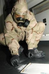 | Keywords: US Navy 030323-N-9403F-048 Damage Controlman 3rd Class Joseph Pierce takes a sample of a suspicious powder from a torn envelope for analysis with a Biological Sampling kit.jpg en The Arabian Gulf Mar 23 2003 -- Damage Controlman 3rd Class Joseph Pierce takes a sample of a suspicious powder from a torn envelope for analysis with a Biological Sampling kit during a chemical biological and radiological CBR attack training exercise aboard the aircraft carrier USS Abraham Lincoln CVN 72 Lincoln and Carrier Air Wing Fourteen CVW-14 are deployed conducting combat missions in support of Operation Iraqi Freedom Operation Iraqi Freedom is the multinational coalition effort to liberate the Iraqi people eliminate Iraq s weapons of mass destruction and end the regime of Saddam Hussein U S Navy photo by Photographer's Mate Airman Jason Frost RELEASED 2003-03-23 030323-N-9403F-048 Navy http //www navy mil/view_image asp id 5622 U S Navy photo by Photographer's Mate Airman Jason Frost PD-USGov-Military-Navy Damage Controlman Aboard USS Abraham Lincoln CVN-72 |