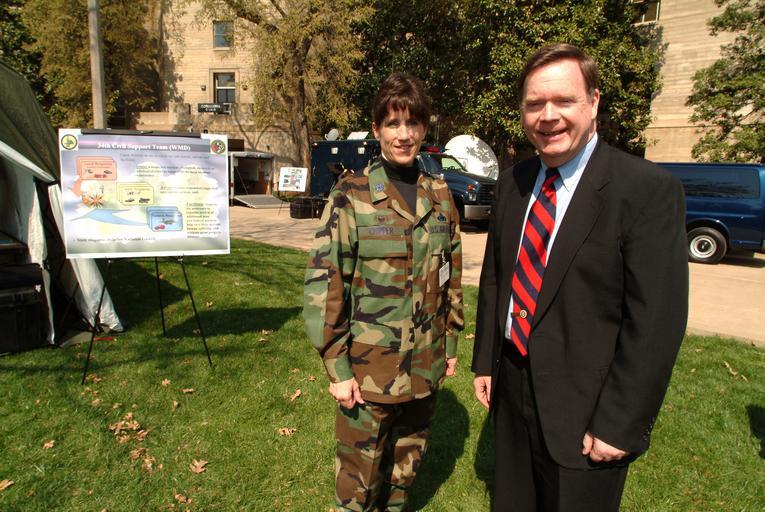 Keywords: US Navy 030326-N-2383B-504 Lt. Col. Colleen Chipper, Commander of the 34th Virginia Guard, Weapons of Mass Destruction-Civil Support Teams (WMD-CST) meets with Assistant Secretary of Defense for Homeland Defense Paul McHale in.jpg en Lt Col Colleen Chipper Commander of the 34th Virginia Guard Weapons of Mass Destruction-Civil Support Teams WMD-CST meets with Assistant Secretary of Defense for Homeland Defense Paul McHale in the center courtyard of the Pentagon as she prepares to show the latest hardware used in dealing with a possible Chemical Biological Radiological Nuclear or High-Yield Explosives CBRNE incidents U S Navy photo by Chief Photographer's Mate Johnny Bivera 2003-03-26 030326-N-2383B-504 Navy http //www navy mil/view_image asp id 5814 U S Navy photo by Chief Photographer's Mate Johnny Bivera PD-USGov-Military-Navy Terrorism in the United States Paul McHale Civil Support Team Taken with Fujifilm FinePix S2 Pro Lens focal length 14 mm ISO speed rating 100 |