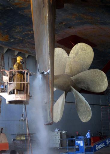 Keywords: US Navy 030327-N-3714J-001 A contractor from National Steel and Shipping Company (NASSCO) hydro-blasts the ship^rsquo,s screws as part of a preservation program for the ship^rsquo,s hull.jpg en USS Belleau Wood LHA 3 Mar 27 2002 -- A contractor from National Steel and Shipping Company NASSCO hydro-blasts the ship s screws as part of a preservation program for the ship s hull USS Belleau Wood LHA 3 is currently in dry dock after returning from a deployment in support of Operation Enduring Freedom The 40 000-ton Navy vessel is the lead element of a three-ship Amphibious Readiness Group ARG Belleau Wood carries a crew of 1 000 Sailors and more than 2 000 Marines U S Navy photo by Photographer s Mate 3rd Class Erika Jones RELEASED 2002-03-27 030327-N-3714J-001 Navy http //www navy mil/view_image asp id 7139 U S Navy photo by Photographer s Mate 3rd Class Erika Jones PD-USGov-Military-Navy Aboard USS Belleau Wood LHA-3 Ship propellers National Steel and Shipbuilding Company Dry docks in the United States |
