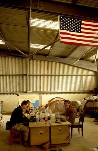 | Keywords: US Navy 030328-N-3783H-345 Members of Commander Task Unit (CTU-55.4.3) eat breakfast in the warehouse they've occupied at the port of Umm Qasr, Iraq.jpg en Umm Qasr Iraq Mar 28 2003 -- Members of Commander Task Unit CTU-55 4 3 eat breakfast in the warehouse they've occupied at the port of Umm Qasr Iraq CTU-55 4 3 consists of U S Naval Special Clearance Team-1 Explosive Ordnance Disposal Mobile Units 6 and 8 Fleet Diving Unit 3 from the United Kingdom and a Clearance Dive Team from Australia all are conducting deep/shallow water mine counter measure operations to clear shipping lanes The unit was instrumental in clearing the way for the British Royal Fleet Auxiliary Landing Ship Logistic RFA Sir Galahad L 3005 which delivered the first wave of humanitarian aid in support of Operation Iraqi Freedom Operation Iraqi Freedom is the multi-national coalition effort to liberate the Iraqi people eliminate Iraq s weapons of mass destruction and end the regime of Saddam Hussein U S Navy photo Photographer s Mate 2nd Class Bob Houlihan RELEASED 2003-03-28 030328-N-3783H-345 Navy http //www navy mil/view_image asp id 5955 U S Navy photo PD-USGov-Military-Navy Umm Qasr in the Iraq War United States Navy Explosive Ordnance Disposal |