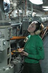 | Keywords: US Navy 030328-N-9403F-024 Aviation Baotswain's Mate 3rd Class Amy Oshaughnessy from Nevada, Iowa, mans an arresting gear machinery room.jpg en The Arabian Gulf Mar 28 2003 -- Aviation Baotswain's Mate 3rd Class Amy Oshaughnessy from Nevada Iowa mans an arresting gear machinery room under the flight deck aboard the aircraft carrier USS Abraham Lincoln CVN 72 Petty Officer Oshaughnessy varies the resistance of the number arresting wires on the ship s flight deck depending on the weight and type of aircraft being recovered as well as monitoring operating pressures Lincoln and Carrier Air Wing Fourteen CVW 14 are conducting combat operations in support of Operation Iraqi Freedom Operation Iraqi Freedom is the multi-national coalition effort to liberate the Iraqi people eliminate Iraq's weapons of mass destruction and end the regime of Saddam Hussein U S Navy photo by Photographer's Mate Airman Jason Frost RELEASED 2003-03-28 030328-N-9403F-024 Navy http //www navy mil/view_image asp id 5999 U S Navy photo by Photographer's Mate Airman Jason Frost PD-USGov-Military-Navy Aboard USS Abraham Lincoln CVN-72 Arrestor cables |