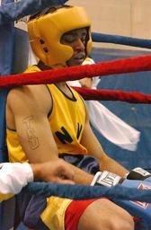 | Keywords: US Navy 030402-N-1485H-013 U.S. Navy boxing team member, Fireman Antonio Knight from Cleveland, Ohio, in the ring.jpg en Colorado Springs Colo Apr 2 2003 -- U S Navy boxing team member Fireman Antonio Knight from Cleveland Ohio in the ring during a championship fight held during the National Boxing Tournament held at the Olympic Training Center in Colorado Springs Colo Fireman Knight is assigned to USS Dwight D Eisenhower CVN 69 homeported in Norfolk Va U S Navy photo by Photographer's Mate Airman Lamel J Hinton RELEASED 2003-04-02 030402-N-1485H-013 Navy http //www navy mil/view_image asp id 6401 U S Navy photo by Photographer's Mate Airman Lamel J Hinton PD-USGov-Military-Navy U S Olympic Training Center Sports in Colorado 2003 in Colorado 2003 in sports in the United States Sports in the United States Navy Boxing in the United States Boxing competitions Sports championships |