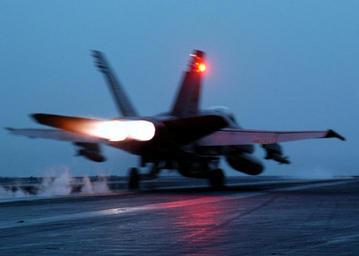 | Keywords: US Navy 030405-N-2410G-502 An F-A-18 Hornet assigned to the ^lsquo,War Party^rsquo, of Strike Fighter Squadron Eighty Seven (VFA-87) launches from the flight deck aboard USS Theodore Roosevelt (CVN 71).jpg en The Mediterranean Sea Mar 5 2003 -- An F/A-18 Hornet assigned to the War Party of Strike Fighter Squadron Eighty Seven VFA-87 launches from the flight deck aboard USS Theodore Roosevelt CVN 71 Roosevelt and Carrier Air Wing Eight CVW-8 are deployed in support of Operation Iraqi Freedom the multi-national coalition effort to liberate the Iraqi people eliminate Iraq s weapons of mass destruction and end the regime of Saddam Hussein U S Navy photo by Photographer s Mate Airman Brad Garner RELEASED 2003-03-05 030405-N-2410G-502 Navy http //www navy mil/view_image asp id 6338 U S Navy photo by Photographer s Mate Airman Brad Garner PD-USGov-Military-Navy USS Theodore Roosevelt CVN-71 flight deck |