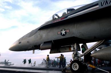 | Keywords: US Navy 030411-N-4953E-099 A Shooter prepares to launch an F-A-18 Hornet.jpg en Mediterranean Sea Apr 11 2003 -- A Shooter prepares to launch an F/A-18 Hornet assigned to the Silver Eagles of Marine Fighter Attack Squadron One One Five VMFA-115 from one of four steam powered catapults on the flight deck of USS Harry S Truman CVN 75 Truman and her embarked Carrier Air Wing Three CVW-3 are conducting combat missions in support of Operation Iraqi Freedom Operation Iraqi Freedom is the multi-national coalition effort to liberate the Iraqi people eliminate Iraq's weapons of mass destruction and end the regime of Saddam Hussein U S Navy photo by Photographer's Mate 3rd Class Danny Ewing Jr RELEASED 2003-04-11 030411-N-4953E-099 Navy http //www navy mil/view_image asp id 6725 U S Navy photo by Photographer's Mate 3rd Class Danny Ewing Jr PD-USGov-Military-Navy Aboard USS Harry S Truman CVN-75 Photographs by Danny Ewing Jr |