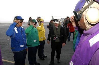 | Keywords: US Navy 030506-N-7575W-001 U.S. Ambassador to Japan, Howard H. Baker Jr., passes through the rainbow side-boys upon his arrival on the flight deck aboard USS Kitty Hawk (CV 63).jpg en Sea of Japan May 6 2003 -- U S Ambassador to Japan Howard H Baker Jr passes through the rainbow side-boys upon his arrival on the flight deck aboard USS Kitty Hawk CV 63 Ambassador Baker arrived to thank the crew for their service on behalf of President George Bush Kitty Hawk and embarked Carrier Air Wing Five CVW-5 recently operated with coalition forces in support of Operation Iraqi Freedom Operation Iraqi Freedom is the multi-national coalition effort to liberate the Iraqi people eliminate Iraq s weapons of mass destruction and end the regime of Saddam Hussein U S Navy photo by Photographer s Mate 3rd Class Jason R Williams RELEASED 2003-05-06 030506-N-7575W-001 Navy http //www navy mil/view_image asp id 7302 U S Navy photo by Photographer s Mate 3rd Class Jason R Williams PD-USGov-Military-Navy Howard Baker Aboard USS Kitty Hawk CV-63 Rainbow sideboys |