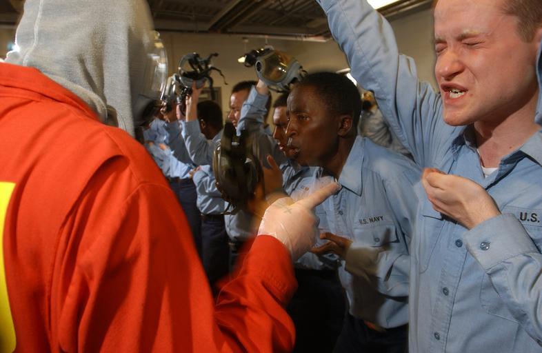 Keywords: US Navy 030509-N-5862D-164 Navy instructor, Damage Controlman 2nd Class, Shawn Love exposes a division of recruits to tear gas as they remove their Gas Mask (MCU-2-P).jpg en Recruit Training Command Great Lakes Ill May 9 2003 - Navy instructor Damage Controlman 2nd Class Shawn Love exposes a division of recruits to tear gas as they remove their Gas Mask MCU-2/P The staff teaches the students how to don their Gas Masks properly and then have them remove their masks and recite their name and social security number This teaches the recruits to have confidence in their equipment and in the training which could be needed if they are exposed to chemical and biological weapons of mass destruction U S Navy photo by Chief Photographer's Mate Chris Desmond RELEASED 2003-05-09 030509-N-5862D-164 Navy http //www navy mil/view_image asp id 11844 U S Navy photo by Chief Photographer's Mate Chris Desmond PD-USGov-Military-Navy Recruit Training Command Great Lakes Illinois Damage Controlman MCU-2/P Protective Mask |