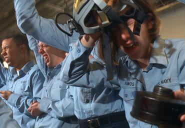 | Keywords: US Navy 030509-N-5862D-166 Training for the worst case scenario, recruits are exposed to tear gas during Chemical, Biological and Radioactive defense (CBR) training at the Fire Fighting Training Unit (FFTU) aboard RTC Great Lak.jpg en U S Navy Recruit Training Command RTC Great Lakes Ill May 9 2003 - Training for the worst case scenario recruits are exposed to tear gas during Chemical Biological and Radioactive defense CBR training at the Fire Fighting Training Unit FFTU aboard RTC Great Lakes Recruits are exposed to an atmosphere of tear gas in a controlled setting while wearing their gas mask Under close supervision the staff will have the students remove their masks and recite their name and social security number This evolution teaches the recruits that the gas mask works and builds confidence in the equipment and training if they are ever exposed to weapons of mass destruction The FFTU trains over 47 000 students annually in basic fire fighting and CBR defense U S Navy photo by Chief Photographer's Mate Chris Desmond RELEASED 030509-N-5862D-166 Navy http //www navy mil/view_image asp id 12099 U S Navy photo by Chief Photographer's Mate Chris Desmond PD-USGov-Military-Navy Naval Station Great Lakes Lachrymatory agents People wearing gas masks MCU-2/P Protective Mask Taken with Nikon D1X |