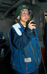 | Keywords: US Navy 030522-N-5786V-506 aman Abby Ramos from Robertsdale, Ala., uses a sound-powered telephone during an underway replenishment between the fast combat support ship USNS Arctic (T-AOE 8) and the Theodore Roosevelt.jpg en At sea aboard USS Theodore Roosevelt CVN 71 May 22 2003 -- Seaman Abby Ramos from Robertsdale Ala uses a sound-powered telephone during an underway replenishment between the fast combat support ship USNS Arctic T-AOE 8 and the Theodore Roosevelt The nuclear-powered aircraft carrier is transiting the Atlantic Ocean to her homeport of Norfolk Va U S Navy photo by Photographer s Mate 2nd Class Angela M Virnig RELEASED 2003-05-22 030522-N-5786V-506 Navy http //www navy mil/view_image asp id 7645 U S Navy photo by Photographer s Mate 2nd Class Angela M Virnig PD-USGov-Military-Navy Aboard USS Theodore Roosevelt CVN-71 Phone talkers underway replenishment Photographs by Angela M Virnig People of the United States Navy with sound-powered telephones |
