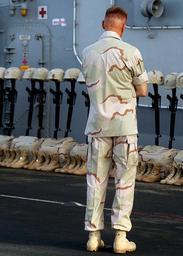 | Keywords: US Navy 030526-N-4048T-009 Brig. Gen. Richard F. Natonski, Commanding General 2D Marine Expeditionary Brigade pauses for a moment of reflection before the beginning of a special Memorial Day Service to honor 23 Marines assigned.jpg en At sea aboard the amphibious assault ship USS Kearsarge LHD 3 May 26 2003 -- Brig Gen Richard F Natonski Commanding General 2D Marine Expeditionary Brigade/Deputy Commanding General II Marine Expeditionary Force pauses for a moment of reflection before the beginning of a special Memorial Day Service to honor 23 Marines assigned to 2d Marine Expeditionary Brigade 2d MEB who paid the ultimate sacrifice during combat missions in support of Operation Iraqi Freedom More than 1 000 Sailors and Marines were present during the ceremony held on the ship s flight deck Kearsarge is currently returning home after deploying January 12 2003 and is expected to arrive at her homeport in Norfolk Va in late June U S Navy photo by Photographer s Mate 2nd Class Alicia Tasz RELEASED 2003-05-26 030526-N-4048T-009 Navy http //www navy mil/view_image asp id 7619 U S Navy photo by Photographer s Mate 2nd Class Alicia Tasz PD-USGov-Military-Navy Aboard USS Kearsarge LHD-3 M16 rifle Soldier's Cross Richard F Natonski |