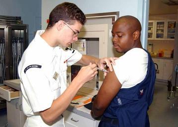 | Keywords: US Navy 030620-N-7535G-021 Hospital Corpsman 3rd Class Brendan Greene gives Aviation Electrician^rsquo,s Mate 2nd Class Mark A. Swann a Typhoid shot during a visit to medical.jpg en Naval Air Station Joint Reserve Base Belle Chasse La Jun 20 2003 -- Hospital Corpsman 3rd Class Brendan Greene gives Aviation Electrician s Mate 2nd Class Mark A Swann a Typhoid shot during a visit to medical Petty Officer Greene and Petty Officer Swann are both three year Training Administrative Reservist TAR stationed at Naval Air Station Joint Reserve Base Belle Chasse U S Navy photo by Photographer s Mate 3rd Class Mark Gleason RELEASED 2003-06-20 030620-N-7535G-021 Navy http //www navy mil/view_image asp id 8286 U S Navy photo by Photographer s Mate 3rd Class Mark Gleason PD-USGov-Military-Navy Naval Air Station Joint Reserve Base New Orleans Typhoid fever |