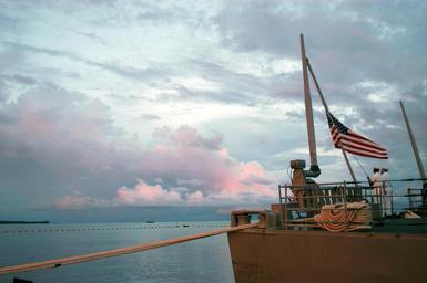 | Keywords: US Navy 030623-N-0493B-006 Sailors aboard the guided missile cruiser USS Vincennes (CG 49) lower the flag during the traditional evening colors ceremony.jpg en Muara Brunei Jun 23 2003 -- Sailors aboard the guided missile cruiser USS Vincennes CG 49 lower the flag during the traditional evening colors ceremony The ship is in the weekl-ong Brunei phase of exercise Cooperation Afloat Readiness and Training CARAT CARAT is a regularly scheduled series of bilateral military training exercises between the U S and several Association of Southeast Asian Nations ASEAN U S Navy photo by Lt Chuck Bell RELEASED 2003-06-23 030623-N-0493B-006 Navy http //www navy mil/view_image asp id 8208 U S Navy photo by Lt Chuck Bell PD-USGov-Military-Navy Images from US Navy location Muara Brunei |