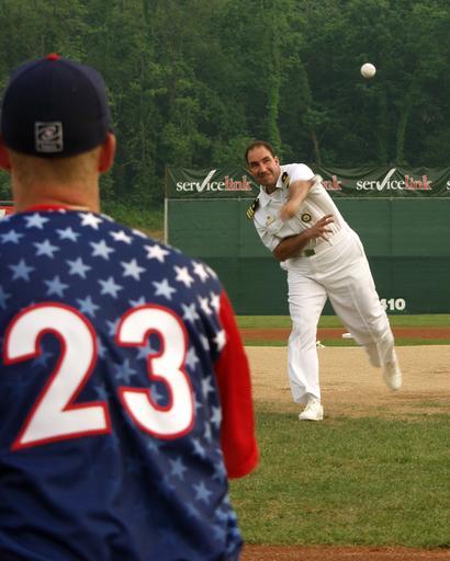 Keywords: US Navy 030702-N-7170H-001 Cmdr. John Coray, Commanding Officer Navy Recruiting Command District Pittsburgh throws the first pitch of a Washington Wild Things game.jpg en Washington County Penn Jul 2 2003 -- Cmdr John Coray Commanding Officer Navy Recruiting Command District Pittsburgh throws the first pitch of a Washington Wild Things baseball game The Wild Things vs Chillicothe game sponsored a Navy appreciation day for the Sailors stationed in the Pittsburgh area U S Navy photo by Journalist 1st Class Joshua Hudson RELEASED 2003-07-02 030702-N-7170H-001 Navy http //www navy mil/view_image asp id 8413 U S Navy photo by Journalist 1st Class Joshua Hudson PD-USGov-Military-Navy Images from US Navy location Washington County Penn Ceremonial first pitch Minor League Baseball 2003 in baseball Number 23 on sportswear |