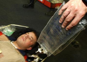 | Keywords: US Navy 030710-N-9769P-026 Storekeeper Seaman Jason Hood from Diamond Bar, Calif., simulates an injured person with a chest wound during a mass causality drill aboard USS John C. Stennis (CVN 74).jpg en The Pacific Ocean Jul 10 2003 -- Storekeeper Seaman Jason Hood from Diamond Bar Calif simulates an injured person with a chest wound during a mass causality drill aboard USS John C Stennis CVN 74 The Navy continuously conducts medical training exercises in a variety of scenarios to ensure its people can respond properly to difficult and unusual circumstances John C Stennis is operating off the coast of Southern California in preparation for an upcoming deployment U S Navy photo by Photographer's Mate 2nd Class Jayme Pastoric RELEASED 2003-07-10 030710-N-9769P-026 Navy http //www navy mil/view_image asp id 8489 U S Navy photo by Photographer's Mate 2nd Class Jayme Pastoric PD-USGov-Military-Navy Aboard USS John C Stennis CVN-74 Storekeeper |