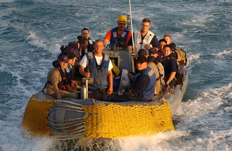 Keywords: US Navy 030716-N-8273J-083 Crewmembers transport Italian sailors to the guided missile cruiser USS Princeton (CG 59).jpg en Central Command Area of Responsibility Jul 16 2003 - Crewmembers transport Italian sailors to the guided missile cruiser USS Princeton CG 59 while participating in cross decking Sailors with the Italian amphibious landing ship San Giusto L 9894 As part of Nimitz Strike Group Princeton is deployed in support of Operation Iraqi Freedom the multi-national coalition effort to liberate the Iraqi people eliminate Iraq s weapons of mass destruction and end the regime of Saddam Hussein U S Navy photo by Photographer s Mate 2nd class Tiffini M Jones RELEASED 2003-07-16 030716-N-8273J-083 Navy http //www navy mil/view_image asp id 11827 U S Navy photo by Photographer s Mate 2nd class Tiffini M Jones PD-USGov-Military-Navy United States Navy images from Central Command USS Princeton CG-59 San Giusto L 9894 |