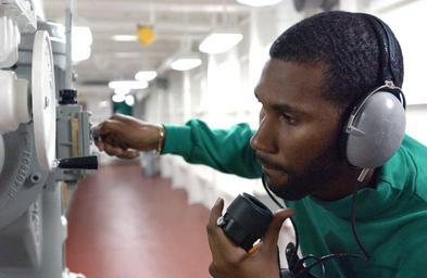 | Keywords: US Navy 030726-N-8148A-032 Aviation Boatswain^rsquo,s Mate 2nd Class Stewart Little of Darlington, S.C., sets the appropriate tension for one of three arresting wires aboard USS Ronald Reagan (CVN 76).jpg en Atlantic Ocean Jul 26 2003 Aviation Boatswain s Mate 2nd Class Stewart Little of Darlington S C sets the appropriate tension for one of three arresting wires aboard USS Ronald Reagan CVN 76 Ronald Reagan is currently underway off the coast of Virginia completing initial flight deck certification U S Navy photo by Photographer's Mate 3rd Class Kitt Amaritnant RELEASED 2003-07-26 030726-N-8148A-032 Navy http //www navy mil/view_image asp id 11715 U S Navy photo by Photographer's Mate 3rd Class Kitt Amaritnant PD-USGov-Military-Navy Arrestor cables on USS Ronald Reagan CVN-76 Aviation Boatswain's Mates |
