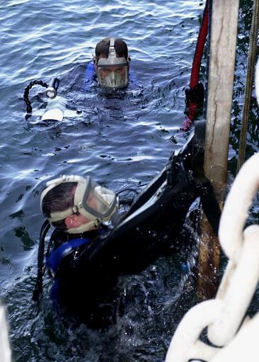 | Keywords: US Navy 030813-N-8977L-004 Mobile Diving and Salvage Unit One (MDSU-1) diver Boatswain^rsquo,s Mate 2nd Class William Feser, of San Diego, Ca., surfaces with an underwater camera while documenting an area of USS Boxer^rsquo,s.jpg en San Diego Ca Aug 13 2003 -- Mobile Diving and Salvage Unit One MDSU-1 diver Boatswain s Mate 2nd Class William Feser of San Diego Ca surfaces with an underwater camera while documenting an area of USS Boxer s LHD-6 hull at Naval Base San Diego Ca MDSU-1 provides swift and mobile ship salvage towing battle damage repair deep ocean recovery harbor clearance and underwater ship repair in support of the Third and Seventh Fleets U S Navy photo by Photographer s Mate 3rd Class Johansen E Laurel RELEASED 2003-08-13 030813-N-8977L-004 Navy http //www navy mil/view_image asp id 9089 U S Navy photo by Photographer s Mate 3rd Class Johansen E Laurel PD-USGov-Military-Navy Naval Base San Diego in the 2000s Mobile Diving and Salvage Unit 1 Full face diving masks |