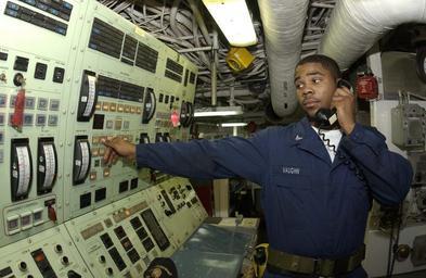 | Keywords: US Navy 030816-N-2613R-002 Gas Turbine System Technician 3rd Class Vaughn from Memphis Tenn., checks a High temperature alarm indicator on one alpha gas turbine generator aboard the Spruance-class destroyer USS Cushing (DD 985).jpg en Pacific Ocean Aug 16 2003 Gas Turbine System Technician 3rd Class Vaughn from Memphis Tenn checks a High temperature alarm indicator on one alpha gas turbine generator aboard the Spruance-class destroyer USS Cushing DD 985 The generator is capable of producing over 25 000-horse power for Cushing s propulsion system U S Navy photo by Photographer's Mate 2nd class Erich J Ryland RELEASED 2003-08-16 030816-N-2613R-002 Navy http //www navy mil/view_image asp id 11513 U S Navy photo by Photographer's Mate 2nd class Erich J Ryland PD-USGov-Military-Navy Gas Turbine System Technicians Aboard USS Cushing DD-985 |