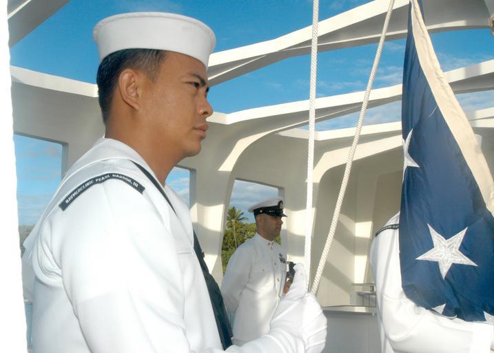 | Keywords: US Navy 031204-N-7391W-047 Hospital Corpsman 1st Class Teodoro Castaneda from Naval Medical Clinic Pearl Harbor.jpg en Pearl Harbor Hawaii Dec 4 2003 -- Hospital Corpsman 1st Class Teodoro Castaneda from Naval Medical Clinic Pearl Harbor raises the national ensign during a ceremony held aboard the USS Arizona Memorial Sailors from Naval Medical Clinic Pearl Harbor planned and participated in the ceremony The flag was flown over the Arizona Memorial and then sent to Somerset County Pennsylvania where it will be flown regularly above the future Flight 93 Memorial commemorating those who perished in the United Airlines Flight 93 on September 11 2001 U S Navy photo by Journalist 2nd Class Jim Williams RELEASED 2003-12-04 031204-N-7391W-047 Navy http //www navy mil/view_image asp id 10931 U S Navy photo by Journalist 2nd Class Jim Williams PD-USGov-Military-Navy Hospital Corpsman USS Arizona Memorial interior |