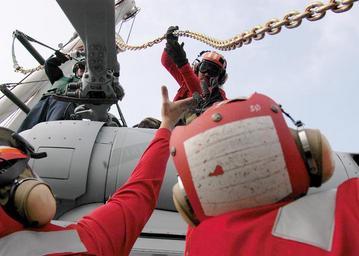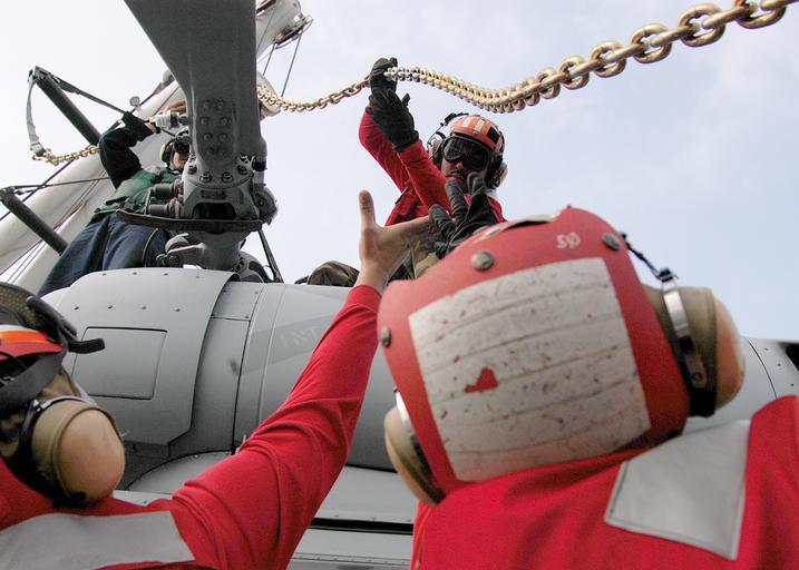 | Keywords: US Navy 031207-N-0715P-046 Members assigned to USS Peleliu (LHA 5) flight deck Crash and Salvage Team and the squadron personnel assigned to the.jpg en Northern Arabian Sea Dec 7 2003 -- Members assigned to USS Peleliu LHA 5 flight deck Crash and Salvage Team and the squadron personnel assigned to the Gunbearers of Helicopter Combat Support Squadron Eleven HC-11 Search and Rescue detachment rig a crane harness onto an MH-60S Knighthawk assigned HC-11 during training operations on the flight deck The Peleliu Expeditionary Strike Group ESG is currently deployed in support of Operation Iraqi Freedom and the continued war on terrorism U S Navy photo by Photographer's Mate 2nd Class Joshua L Pritekel RELEASED 2003-12-07 031207-N-0715P-046 Navy http //www navy mil/view_image asp id 10945 U S Navy photo by Photographer's Mate 2nd Class Joshua L Pritekel PD-USGov-Military-Navy Aboard USS Peleliu LHA-5 Helicopter Combat Support Squadron 11 United States Navy |