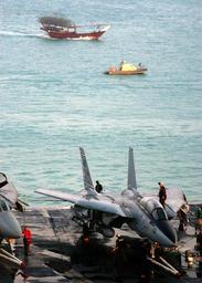 | Keywords: US Navy 031227-N-9742R-001 Flight deck personnel conduct maintenance on an F-14 Tomcat assigned to the Checkmates of Fighter Squadron Two One One (VF-211) on the flight deck aboard USS Enterprise (CVN 65).jpg en Manama Bahrain Dec 27 2003 -- Flight deck personnel conduct maintenance on an F-14 Tomcat assigned to the Checkmates of Fighter Squadron 211 VF-211 on the flight deck aboard USS Enterprise CVN 65 while a U S Navy coastal patrol boat maintains a security perimeter around the aircraft carrier Enterprise and Carrier Air Wing One CVW-1 are currently deployed conducting missions in support of Operation Iraqi Freedom and the continued war on terrorism U S Navy photo by Photographer's Mate Airman Milosz Reterski RELEASED 2003-12-27 031227-N-9742R-001 Navy http //www navy mil/view_image asp id 11191 U S Navy photo by Photographer's Mate Airman Milosz Reterski PD-USGov-Military-Navy F-14 Tomcat maintenance Fighter Squadron 211 United States Navy Aboard USS Enterprise CVN-65 US Navy in Manama Bahrain |