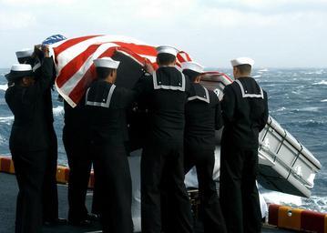 | Keywords: US Navy 040115-N-5027S-002 Sailors aboard USS Saipan (LHA 2) conduct a burial at sea off the coast of Virginia for a former U.S. sailor.jpg en Atlantic Ocean Jan 15 2004 -- Sailors aboard USS Saipan LHA 2 conduct a burial at sea off the coast of Virginia for a former U S Sailor Active duty service members retirees and veterans who were honorably discharged U S civilian marine personnel of the Military Sealift Command; and dependent family members of active duty personnel retirees and service veterans are eligible for this service The amphibious assault ship Saipan is conducting pre-deployment training U S Navy photo by Photographer's Mate 2nd Class Robert M Schalk RELEASED 2004-01-15 040115-N-5027S-002 Navy http //www navy mil/view_image asp id 11405 U S Navy photo by Photographer's Mate 2nd Class Robert M Schalk PD-USGov-Military-Navy Sea burials Aboard USS Saipan LHA-2 |