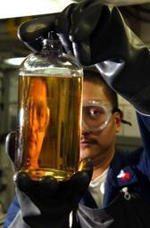 | Keywords: US Navy 040202-N-9288T-127 Gas Turbine System Technician 1st Class Heraley Valdez, from Manila, Philippines, also known as the Oil King.jpg en Aboard USS Vincennes CG 49 Feb 2 2004 Gas Turbine System Technician 1st Class Heraley Valdez from Manila Philippines also known as the Oil King aboard the guided missile cruiser USS Vincennes CG 49 does a clear and bright check on a sample of fuel following a replenishment-at-sea evolution with the Military Sealift Command MSC ship USNS Yukon T-AO 202 Vincennes is participating in Multi-Sail a combat readiness exercise in the Okinawa operational area U S Navy photo by Photographer s Mate 2nd Class Brandon A Teeples RELEASED 2004-02-02 040202-N-9288T-127 Navy http //www navy mil/view_image asp id 11739 U S Navy photo by Photographer s Mate 2nd Class Brandon A Teeples PD-USGov-Military-Navy Aboard USS Vincennes CG-49 Sample fueling-at-sea Gas Turbine System Technicians Aboard USNS Yukon T-AO-202 |