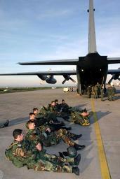| Keywords: US Navy 040204-N-5821W-004 Members of Explosive Ordnance Mobile Unit Eight (EODMU-8) wait to board an Air Force C-130 Hercules.jpg en Naval Air Station Sigonella Sicily Feb 4 2004 - Members of Explosive Ordnance Mobile Unit Eight EODMU-8 stationed at Naval Air Station Sigonella wait to board an Air Force C-130 Hercules at the Naval Air Station Sigonella flight line before a parachute training jump The jump was part of monthly training for the unit which includes static line freefall and ram air parachute systems Naval Air Station Sigonella provides logistical support for Commander Sixth Fleet and NATO forces in the Mediterranean area U S Navy photo by Journalist 3rd Class Stephen P Weaver RELEASED 2004-02-04 040204-N-5821W-004 Navy http //www navy mil/view_image asp id 11900 U S Navy photo by Journalist 3rd Class Stephen P Weaver PD-USGov-Military-Navy Naval Air Station Sigonella Explosive Ordnance Disposal Mobile Unit 8 |